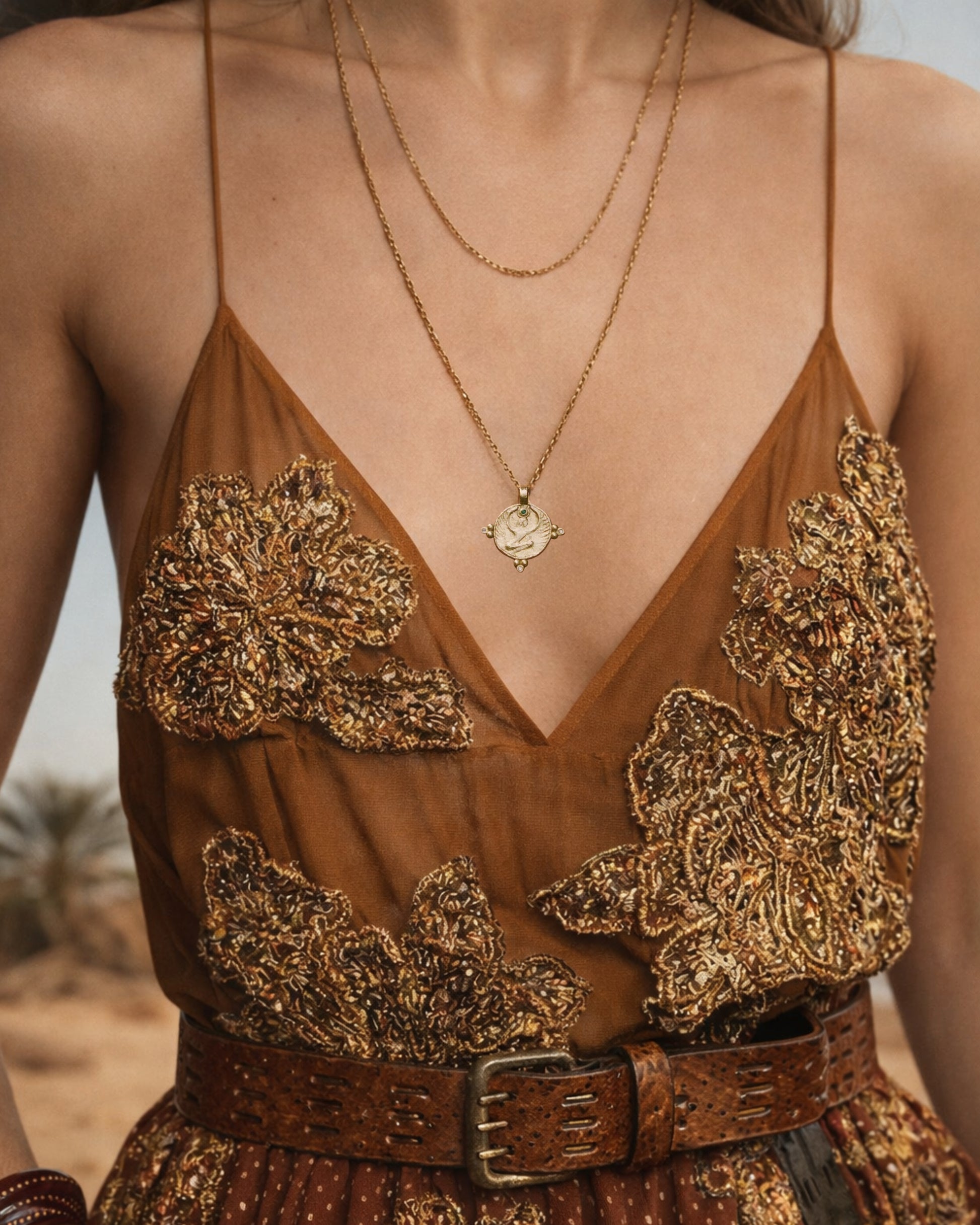 This pendant distills thousands of years of feminine symbology into a single sculptural form. It draws on ancient iconography through an abstract depiction of Ahset, the Egyptian goddess later known as Isis, whose lineage extended across cultures through related archetypes including Hathor, Venus, Aphrodite, and echoes found in later sacred mother figures.
