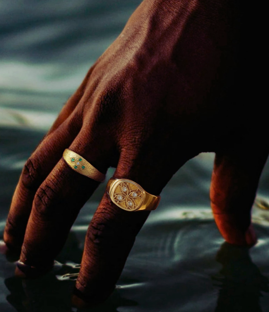 Inspired by protective diagrams found in historic Ethiopian healing scrolls, this signet draws on geometric forms traditionally created by priest scholars. These diagrams were used as visual symbols of protection, intended to guard the wearer and ward off misfortune.